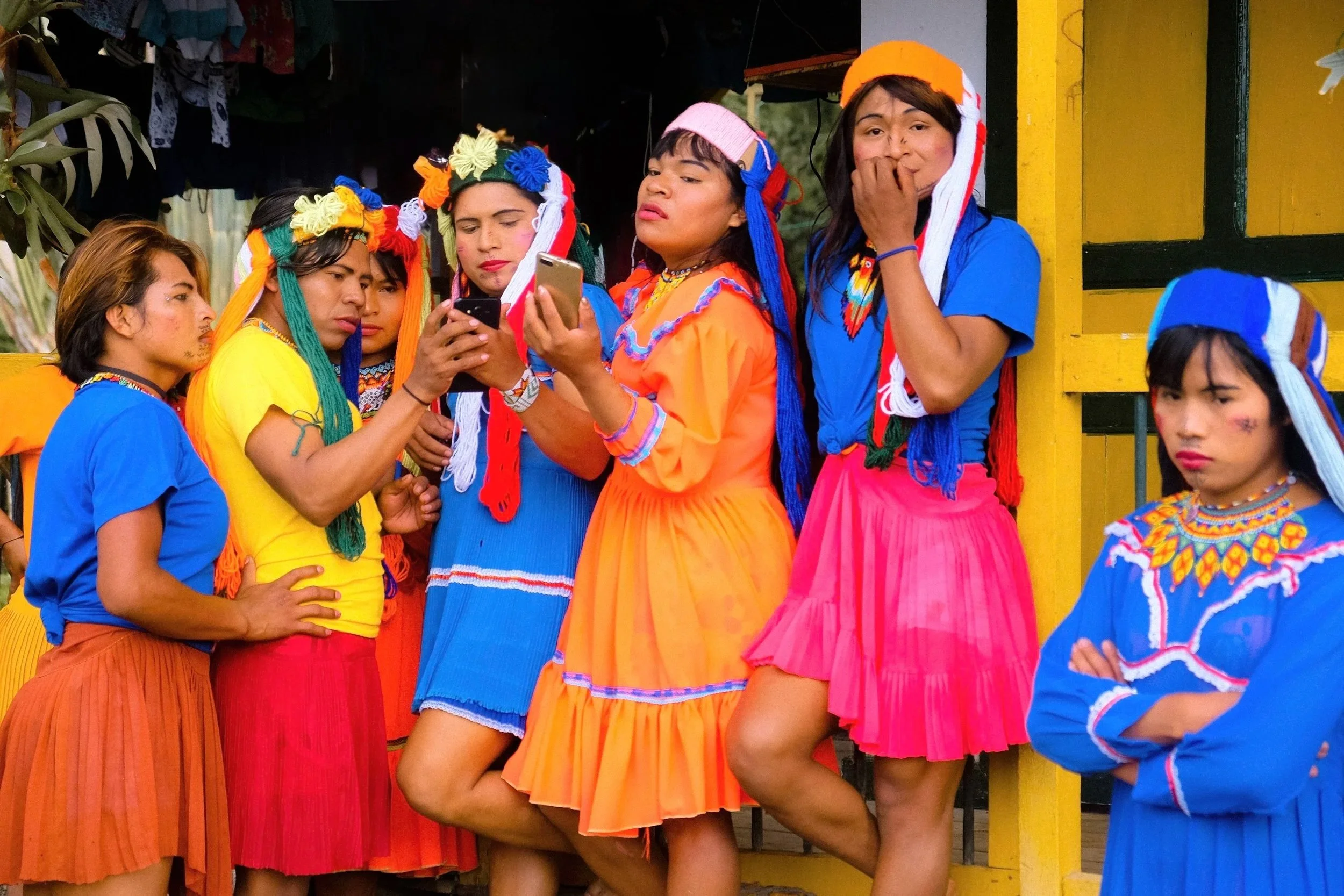 Azamuna (“Real dream, between land and culture”) is a photographic series that emerged from a co-creation workshop with Las Traviesas. The images were captured by artist Camo Delgado, who also shared his knowledge of photography with the community. These behind-the-scenes photographs document moments of learning, collaboration, and collective creation. In Azamuna, the camera becomes a space of exchange, resistance, and visibility for trans-Indigenous identities. The series invites viewers into the AWERA processes.