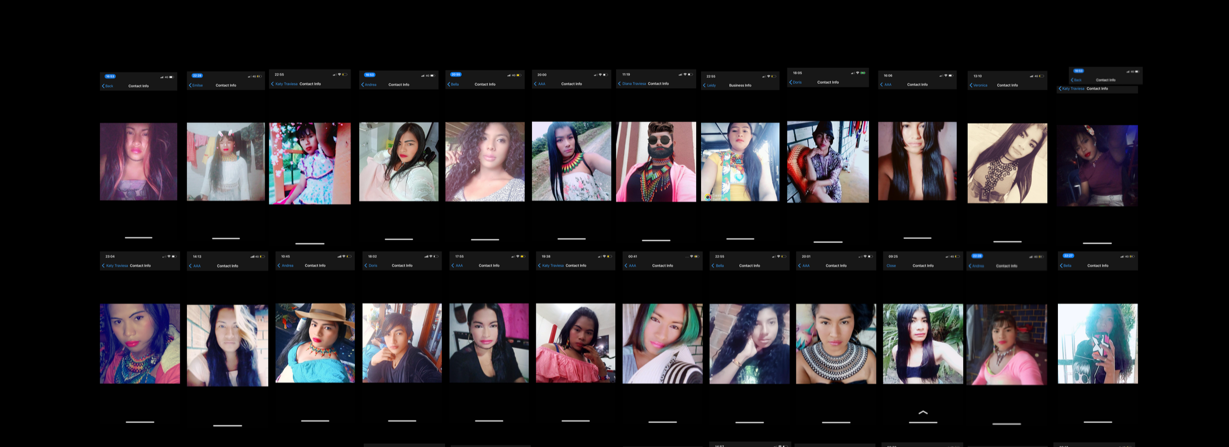 KARU presents an intimate archive of self-representation by Las Traviesas, created between 2021 and 2024. Composed of selfies exchanged through WhatsApp—their primary space of connection and care—the installation transforms ephemeral digital gestures into a fierce affirmation of existence.